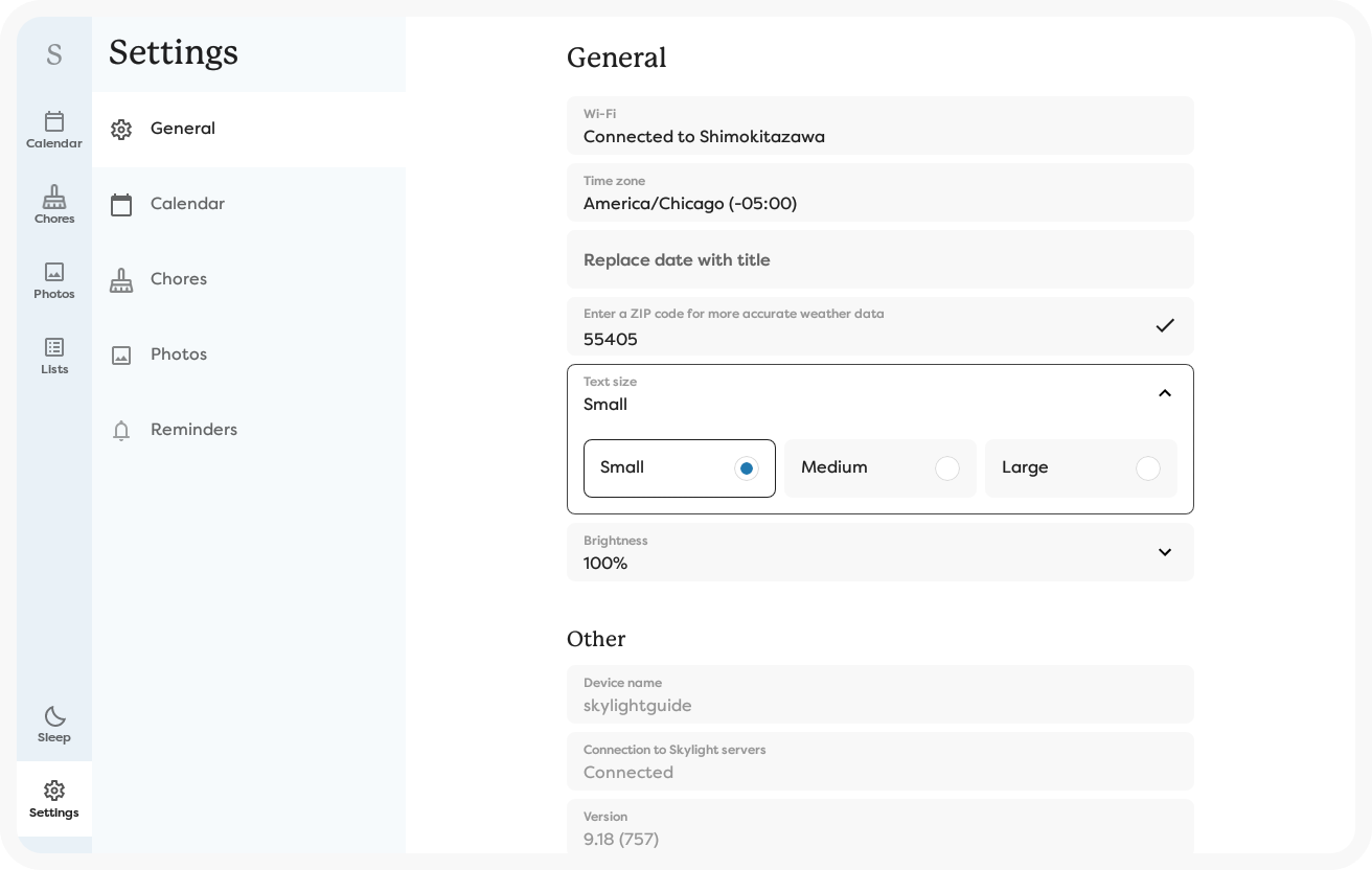 You can configure the font size of your Skylight Calendar to show text smaller or larger.
