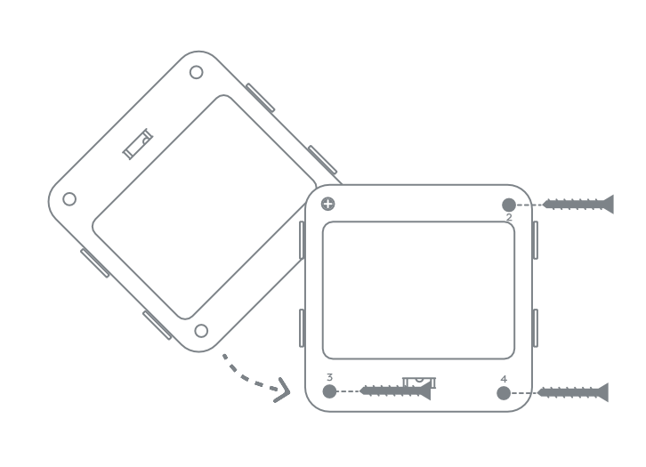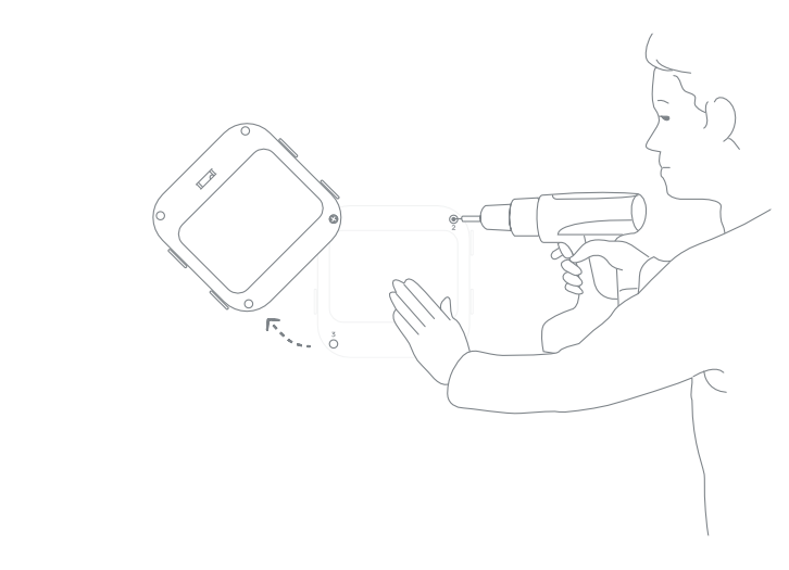 - Position the mount back over the holes and wall anchors and screw the remaining three screws into Holes 2, 3, and 4.