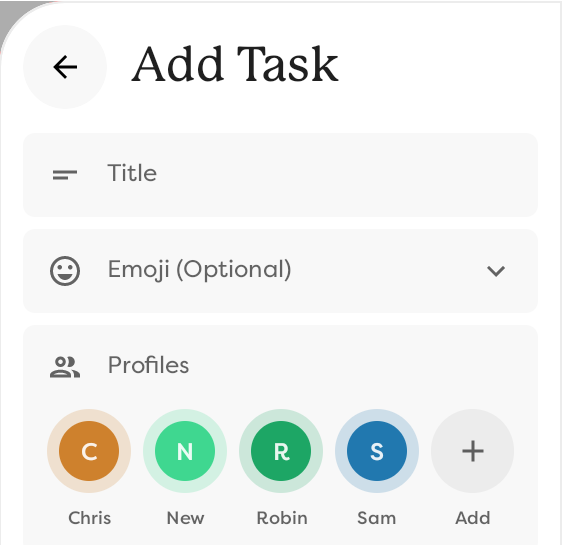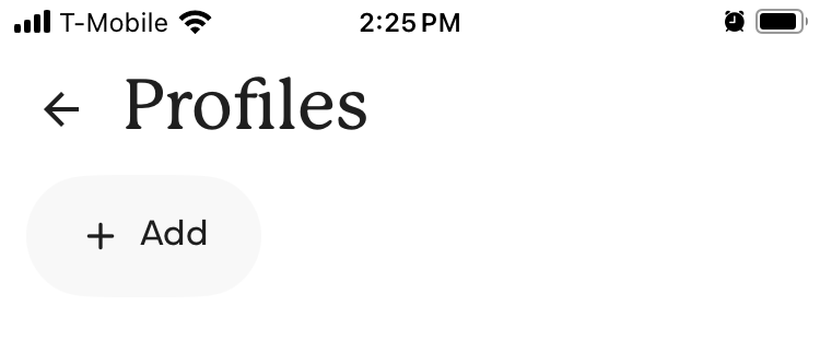 To verify that tasks can be assigned to the Profile, tap the Add button to create a new task. The missing Profile should now be visible in the Profiles list.