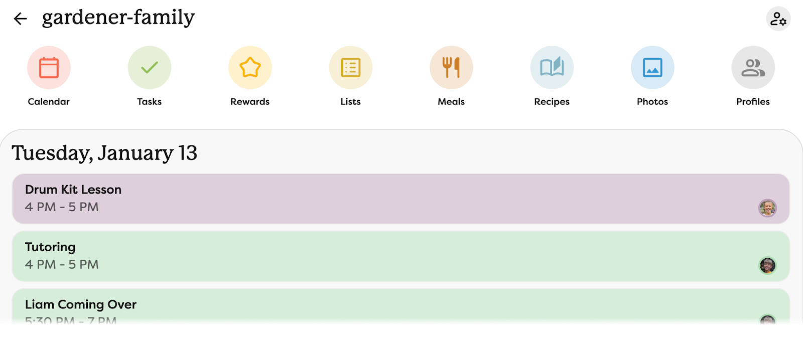 Each Calendar device in your Skylight Account has a home screen in the Skylight Desktop App, collecting all of the Skylight functions in one place: